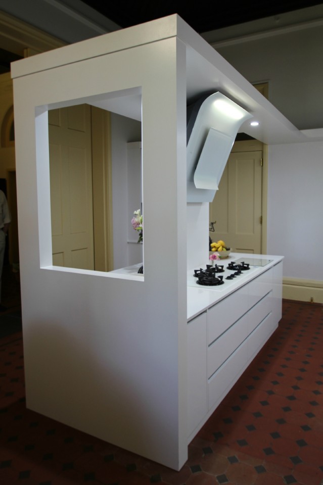 January 20 2015The doors, drawers and panels were manufactured from a white high gloss board.