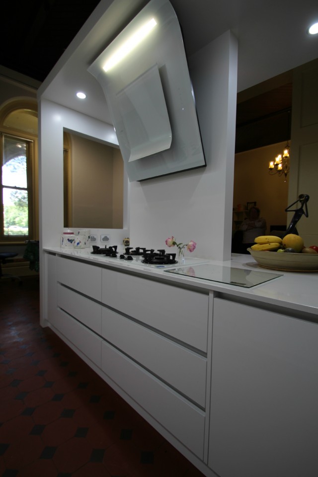 Certainly, from design stage with the most helpful insight and advice from his designer – Pauline Ribbans to completion by skilled craftsmen, the project was completed to my absolute satisfaction and looks magnificent. The quality of the cabinetry is most impressive and installation of kitchen equipment including range hood and flue first rate workmanship.
