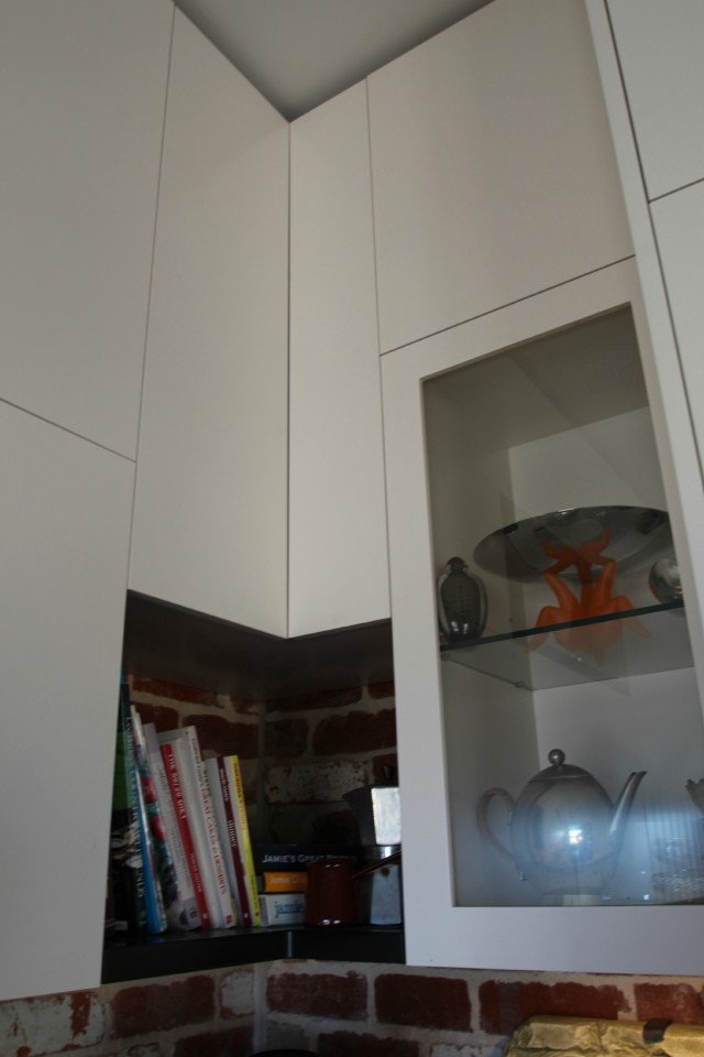 The corners were utilsed and made accessible with the clever wire pull out units from Titus Tekform.