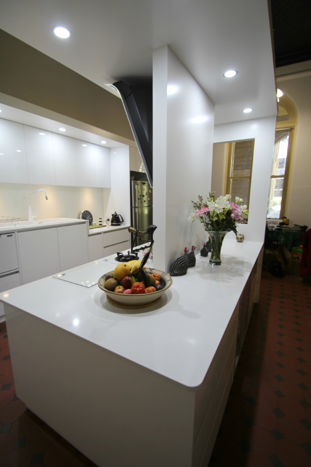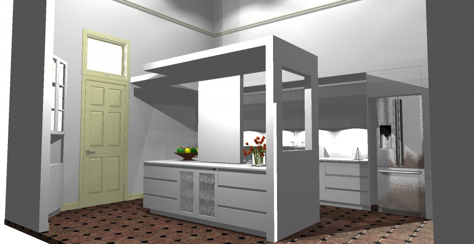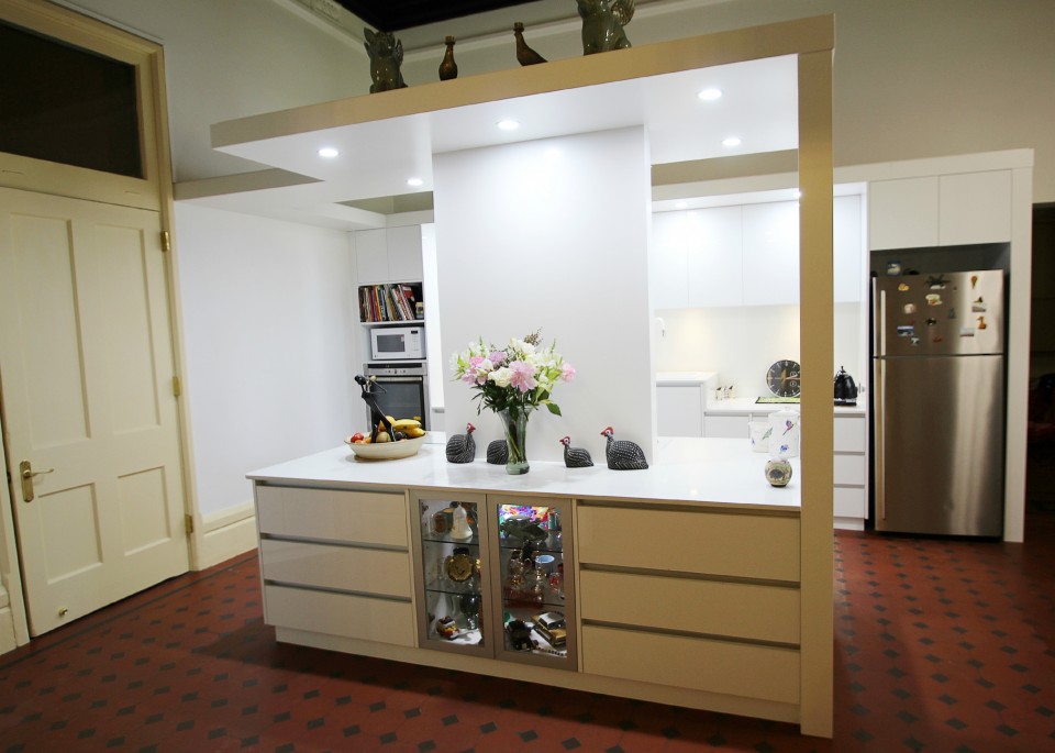 Given that a new floor was to be laid we had complete reign over a new design. An Island Bench for sitting at was requested.