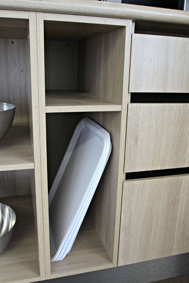 BLUM Softclose drawers were used throughout the kitchen. The new Antaro range has weight loadings upto 60kg per drawer, fully extended! That’s a lot of plates! We also used some of the clever storage options that BLUM have in their range such as the Bottle Set and cutlery and utensil storage systems.